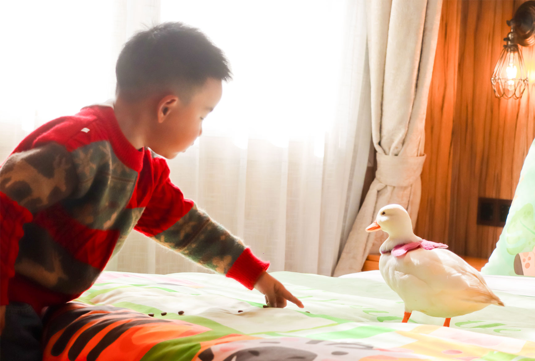 黄龙溪欢乐田园野趣酒店还特别开启了萌宠巡房服务,游客可以和精心挑选的柯尔鸭、羊驼、小山羊、小浣熊等动物在房间亲密互动!